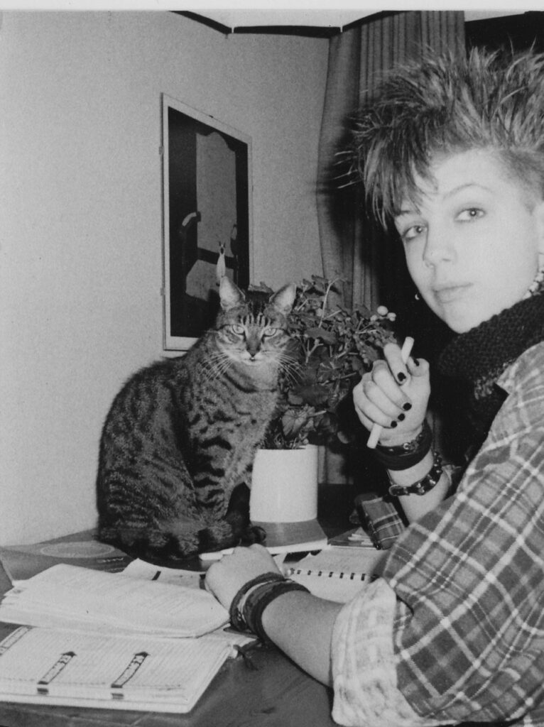 In mijn middelbare schooltijd spijbel ik vaak met mijn vriendinnen. We schrijven onze namen op de muren. Gedichtjes schrijf ik alleen in mijn dagboek. Ik heb gemerkt dat de buitenwereld niet altijd met open armen op mijn binnenwereld staat te wachten. Later vinden de gedichten toch hun weg naar buiten, vermomd als liedjes, bij de band waarin ik speel. Ook maak ik met vrienden een lokaal TV programma, waar in sketches en clips woord en beeld samen komen.